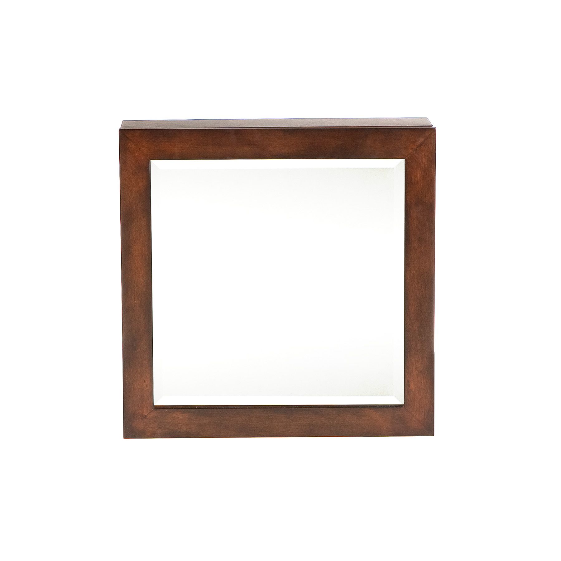 Elegant yet understated, this espresso wall mount jewelry armoire is an ideal solution to keep you organized. Unlike others, this unit is compact and concise which provides the true necessities. Seven double hooks, two earring racks, seven ring holders and an organizer tray for assorted pieces are available within the cabinet. Completed with a beveled mirror on the front, this stylish jewelry storage option is perfect for bedroom, bathroom or entry. 18" W x 5.25" D x 18" H Constructed with hardwood veneer over MDF and a beveled mirror Hangs on the wall as easily as a picture No assembly required Click on Alternate Views to see additional detail.