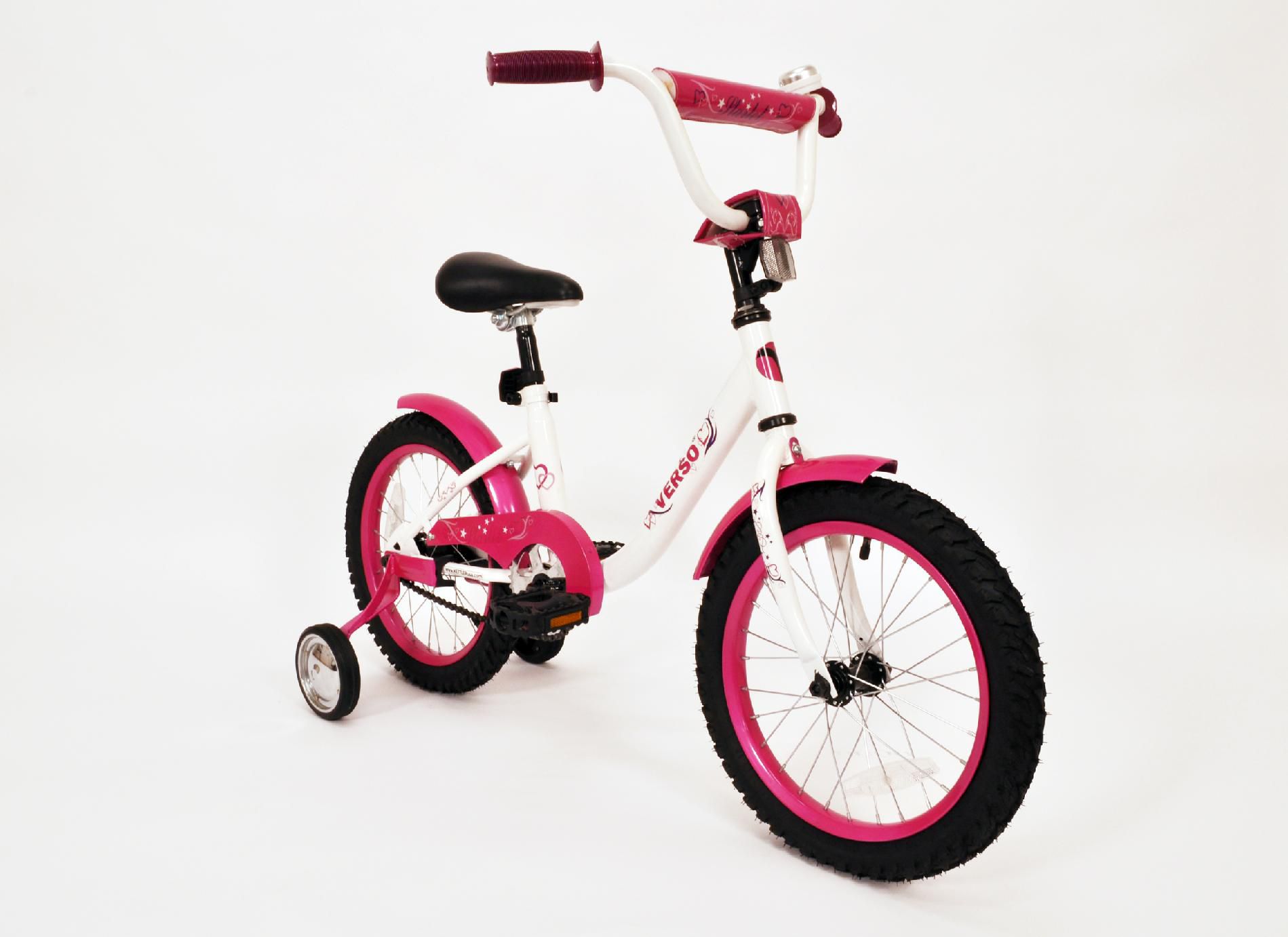 KT1640: Discovering the joys and adventures of the outdoors are fun and safe with the 16 Verso Starlet bicycle. This stylish bike is sure to spark fond memories that will be treasured forever by your child. It sports bright vibrant colors and all the cool features that kids love - and best of all, parents will have peace of mind because they know the bike comes fully equipped with safety features. Removable and adjustable training wheels, padded handlebars, rear coaster brakes, durable steel frames and an enclosed chain are only the beginning to getting the kids off to a safe start. Pneumatic tires, a full set of reflectors and sporty fenders make this bike a very cool ride. For a custom fit that ensures proper posture, the padded seat and handlebars are adjustable. Nobody's tougher on bikes than kids, but the 16 Verso Starlet is dependable, built to last and easy to ride. Features: -European inspired easy step through sturdy painted steel frame with resilient high tensile painted steel fork. -Durable steel crank with chrome plated chain ring and reliable rear coaster brake. -Front and rear painted metal fenders. -4-Bolt stem with padding with painted padded handle bars. -Painted steel seat post with quick release collar and reflector. -Large anti-slip pedals with reflectors. -Adjustable, removable slip resistant training wheels. -Sturdy metal painted chain guard. -Ringing bell. -Assembly required.